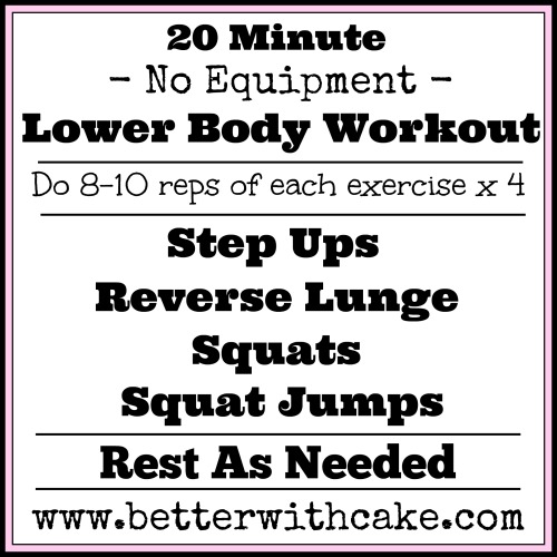 Nothing complicated, basic movements done with good form for a short but effective lower body workout that will leave you feeling strong, energized and ready to take on the rest of your day.