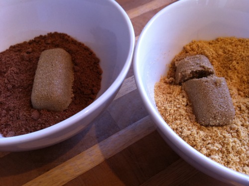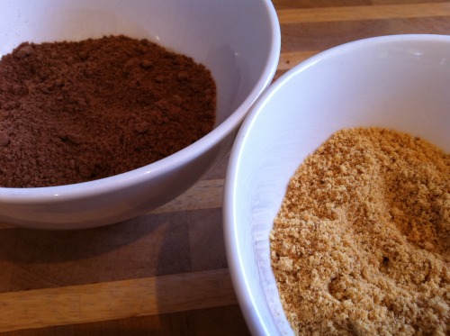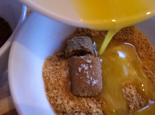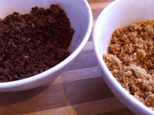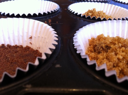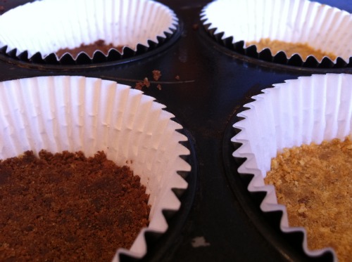 Place your cookie crumbs into a small bowl (or bowls if your splitting the mix and making a chocolate crust and regular cookie crust like me :))