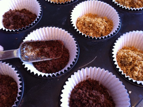 Press/flatten cookie mix into the cases…press it down nice and firmly…