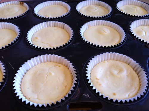 Remove the paper cases before adorning the tops of your precious little cheesecakes with spoonfuls of your wonderful, ruby red and oh so delicious cherry sauce.