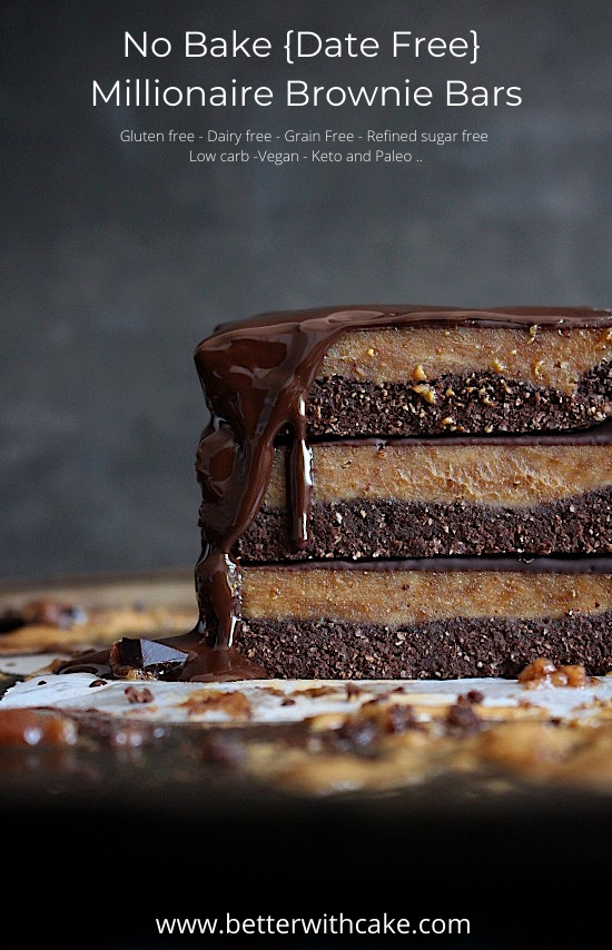 No bake {date free} millionaire brownie bars, where have you been all my life?!