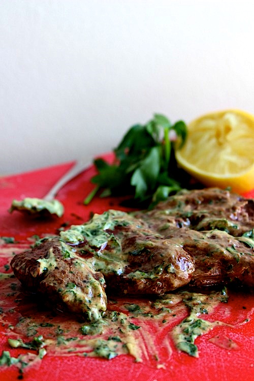 5 – Transfer cooked steaks directly onto your mustard/lemon dressing and turn to ensure they get a good coating on all sides.