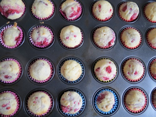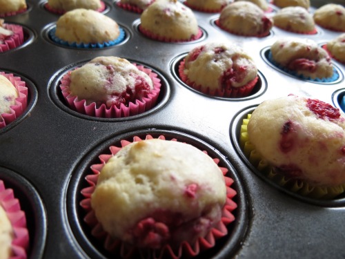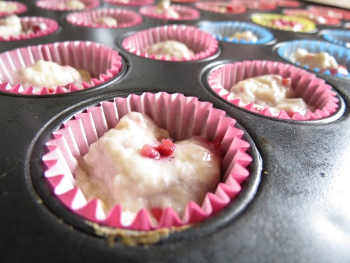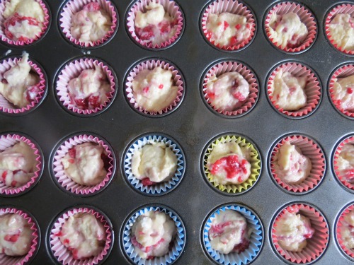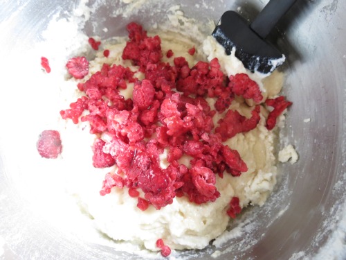 Now for something completely different….crumble your raspberries into the batter and gently fold into the mix.