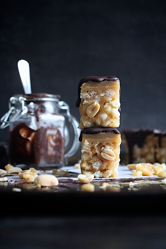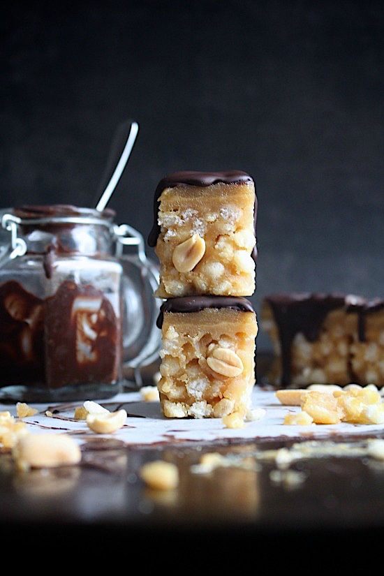 My copycat snickers crispers turned out way better than the original. And I don’t just mean because they’re made with more wholesome, “better for you” ingredients. My healthier, homemade version has a punchier, peanut butter flavour and also, dark chocolate always wins!
