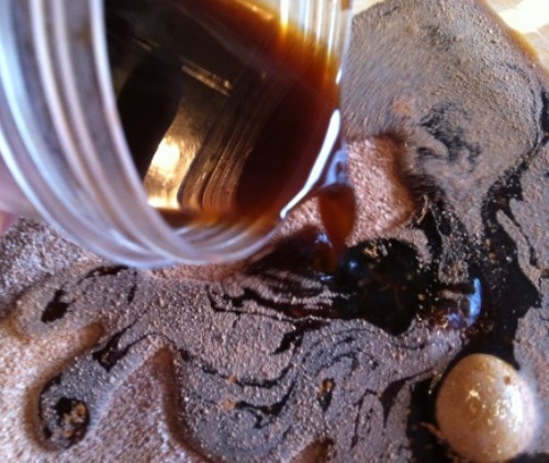 Now lastly pour the cup of cold coffee over the top….
