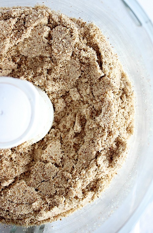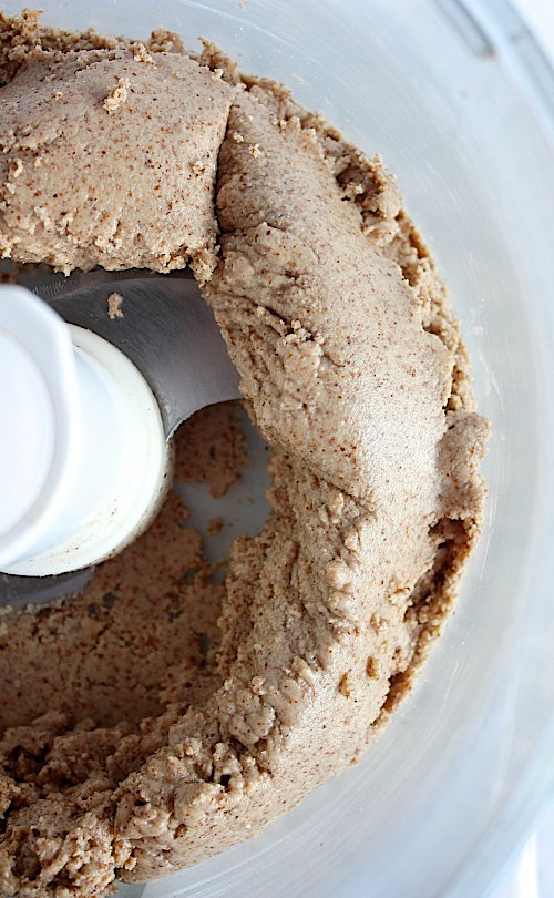 Now, once our almonds are nicely toasted, and your house smells like heaven, all you have to do it toss them into your food processor or blender then blendy, mcblend – you’re pretty much done!