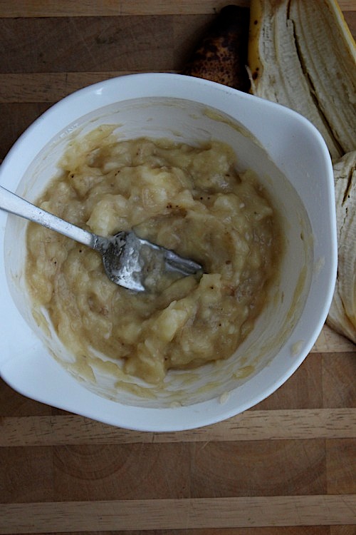 3 – In a medium size bowl, mash banana.