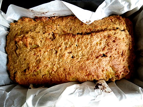 Pour batter into prepared loaf pan and bake for 30-40 mins until golden brown (and smelling incredible!!!!)