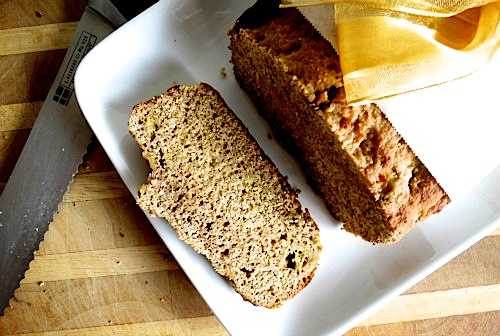 Extra lucky that Jenna had included a killer banana bread recipe in said book. Perfect for me to snuggle up in my jimmy jams with a nice cup of green tea and a big ol’ chunk of fresh, deeelicious (and seriously healthy) banana bread to survive the pouring rain.