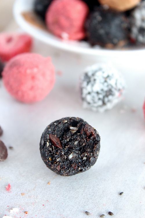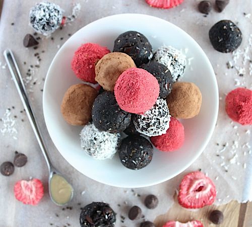 Strawberry Choc Chip Tahini Bliss Bites {Date Free}