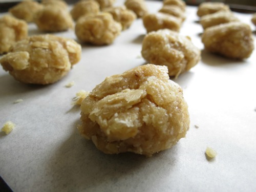 Line a baking tray with baking/parchment paper and spoon batter (about a Tablespoon) just a few centimetres apart,