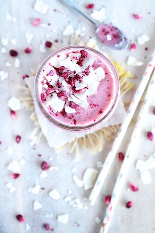 1/3 cup of frozen Pomegranate arils (any red berry would work – strawberries or raspberries would be amazing here too)