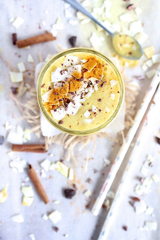 This smoothie not only tastes simply divine with creamy coconut yogurt combined with the subtle sweetness of our frozen banana, a splash of vanilla and the gentle, belly warming hum of turmeric, cinnamon and ginger really does taste all kinds of incredible, but this pretty little smoothie of ours also happens to be a nutritional powerhouse! 😋👊🏻💛