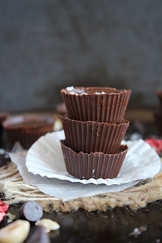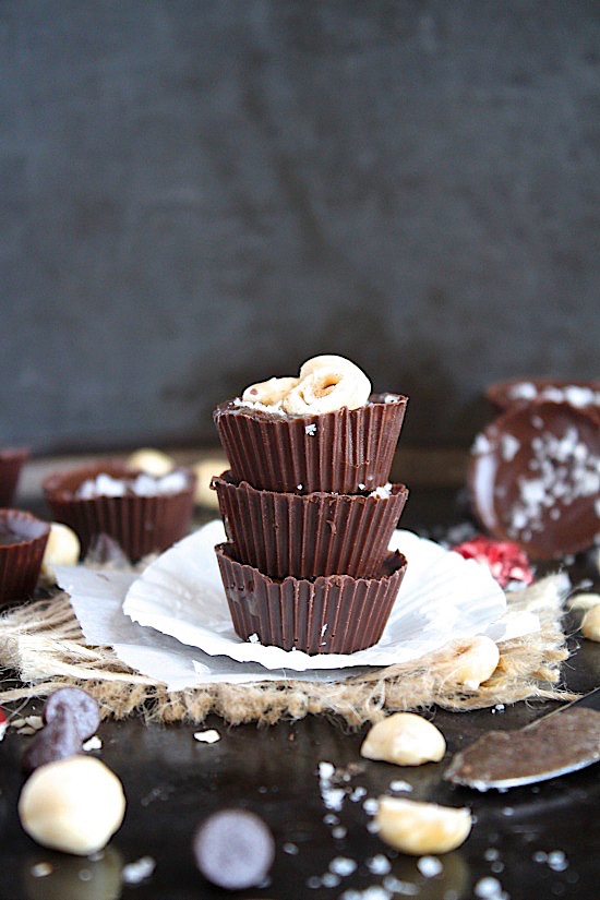 Healthy, Homemade, 3 Ingredient – Salted Dark Chocolate Hazelnut Almond Butter Cups {Vegan, Gluten Free & Paleo Friendly}