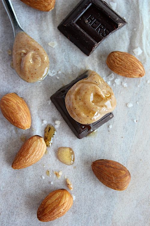 AndĀ Iām not saying that you have to but, I strongly suggest that you doĀ . . . grab yourself a big ol’ block chunk of your fave dark chocolate, add a generous dollop of your freshly made, creamy, dreamy, golden, delicious, maple-vanilla almond butter . . .