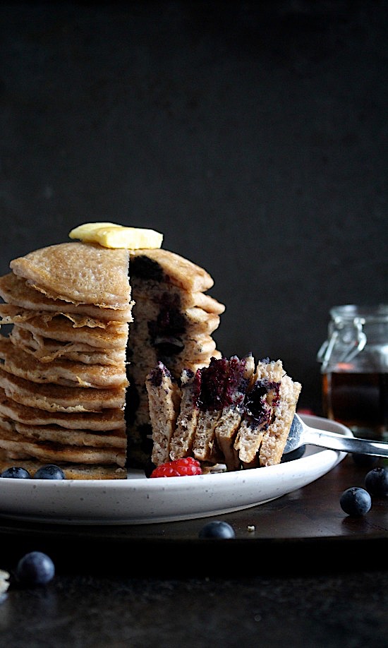 Fluffy {Paleo} Vanilla Spiked Blueberry Pancakes