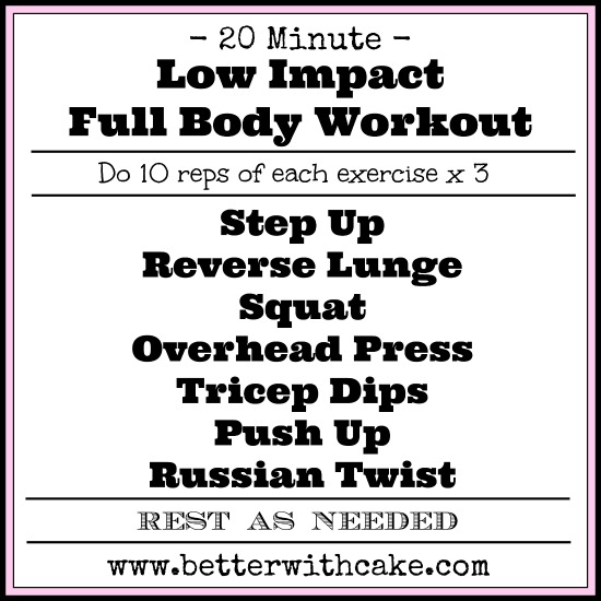 Today I’m sharing a short, sharp, low impact total body workout that you can do anywhere, anytime with or without equipment, totally your call.