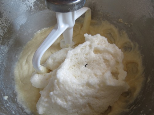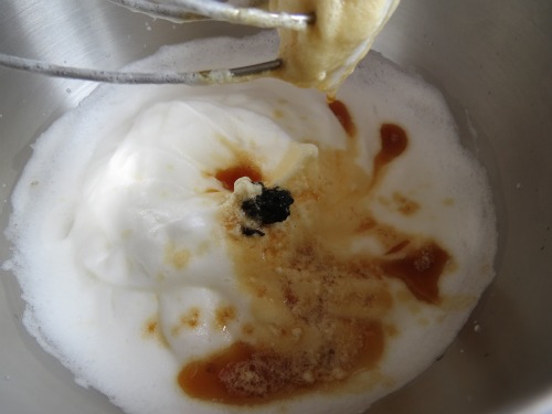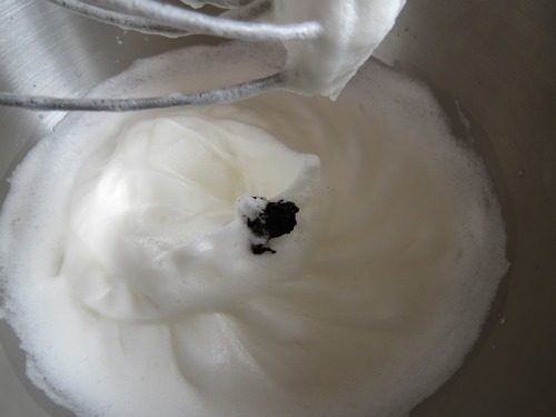 Then add the vanilla seeds to your egg whites,