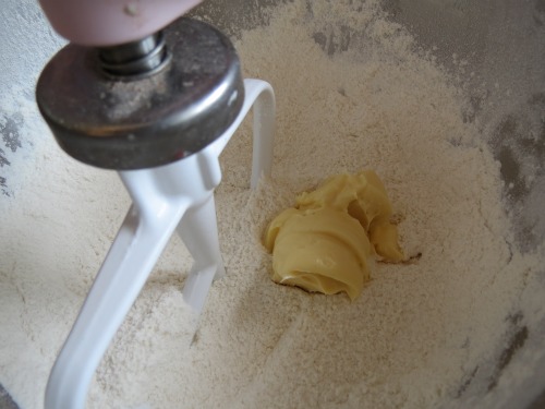 Next add the butter and mix until just combined (because of the very little amount of butter in this recipe it will look like a very fine, dry sort of crumb mix, just a little FYI….because I love you :)) .
