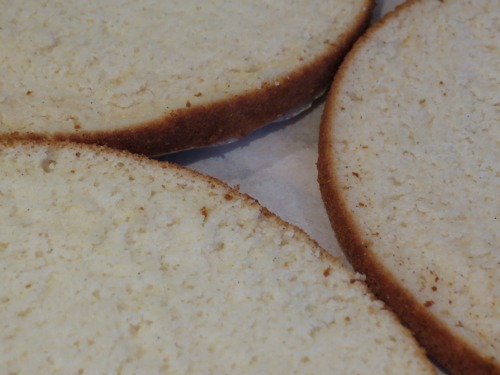 Once completely cooled, if you want to make a 4 layer cake (which I did) slice each cake in half.