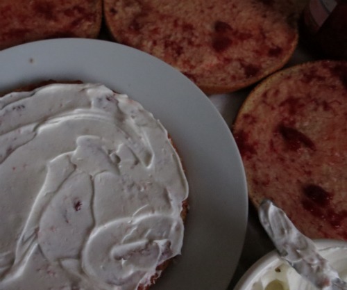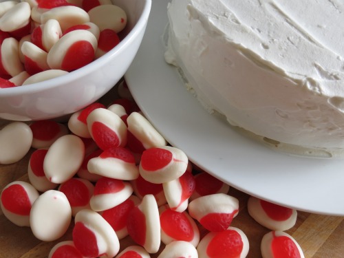 You find the best ever vanilla cake recipe (I recently discovered I didn’t have a vanilla cake recipe I really care for….but I do now, and so do you……your welcome 🙂 ), then you fill it will delicious sweet strawberry jam and cream (or in my case dream whip) and top it will my her all time favourite lollies.