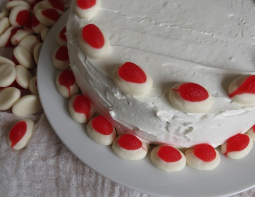 Sweet, light, fluffy vanilla cake layers with the tiny flecks of real vanilla seeds….its truly a beautiful thing. Worthy of royalty.
